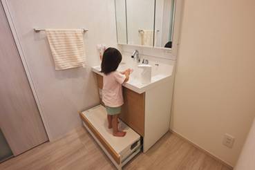 そこでおすすめなのが、洗面台下の引き出しが踏み台になるタイプ。