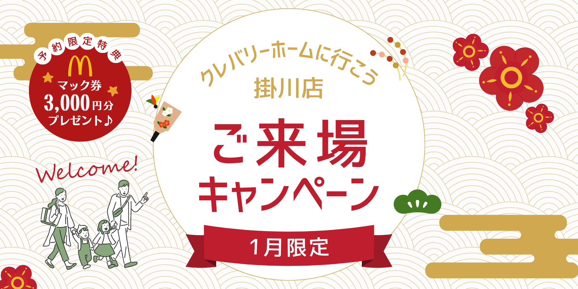 1月限定でこちらのホームページからの来場予約をいただいた方全員に、マックカード3,000円分プレゼントいたします。